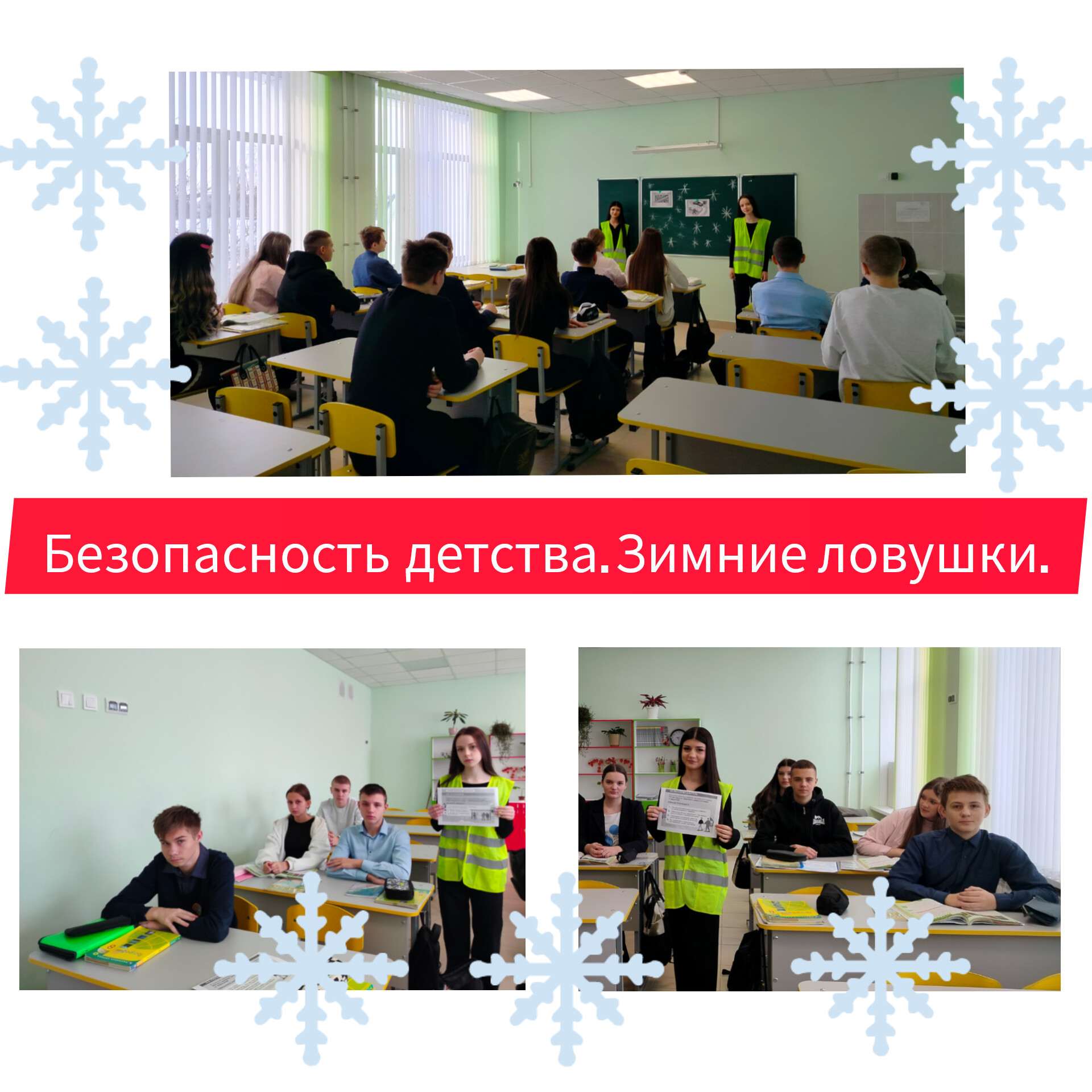 ❄️Зимние ловушки для пешеходов- это ситуации, когда безопасность кажется обманчивой из-за сложных погодных условий:(снегопад, гололёд, метель) и препятствий на дороге.⚡ С целью профилактики дорожно- транспортных происшествий с участием пешеходов 🚦 юные инспекторы дорожного движения МБОУ СОШ номер 2 п. Нарышкино Урицкого района в рамках акции "БЕЗОПАСНОСТЬ ДЕТСТВА" среди учащихся школы провели минутку безопасности "Зимняя дорога". В ходе мероприятия было отменено, что в снегопад ❄❄❄ заметно ухудшается видимость, появляются заносы, ограничивается и затрудняется движение пешеходов и транспорта. В морозную погоду 🌨️стёкла транспорта покрываются изморозью и поэтому снижается видимость для водителя, а значит, чтобы не случилось беды участники дорожного движения не должны торопиться и быть внимательны на дороге. Яркое солнце 🌞 и белый снег ❄ являются причиной дорожно- транспортных происшествий, поэтому необходимо учитывать изменения в погодных условиях.