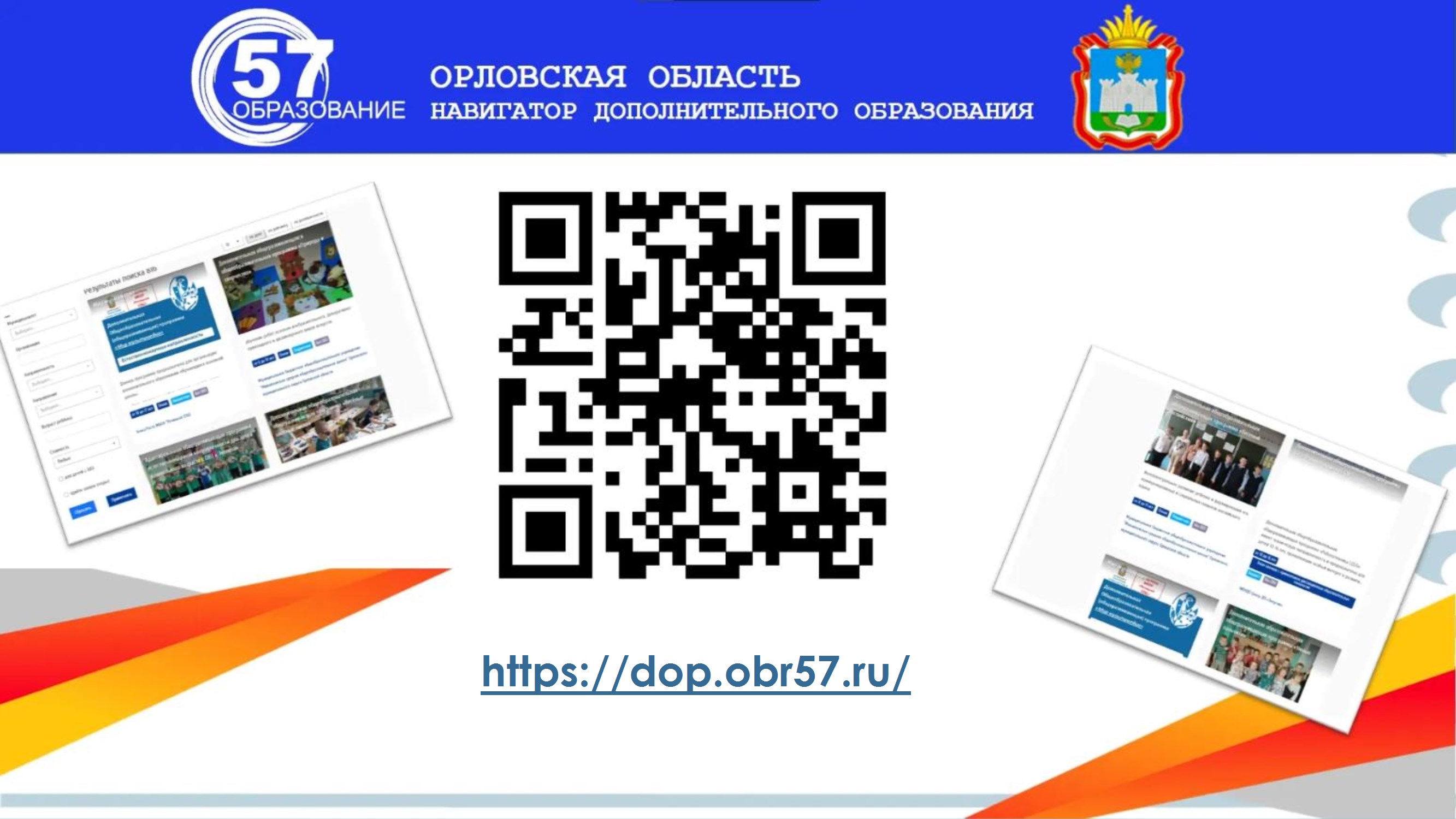 Важно! Навигатор дополнительного образования, расположенный ранее по адресу https:// р57.навигатор.дети/ (Орловская область), в настоящее время не функционирует.